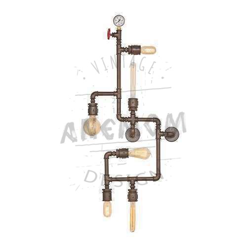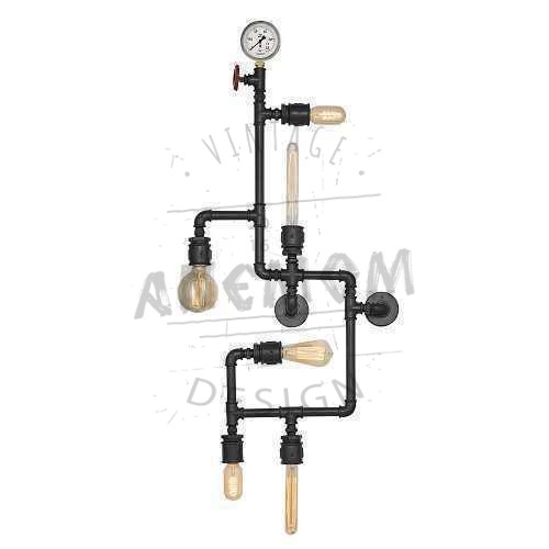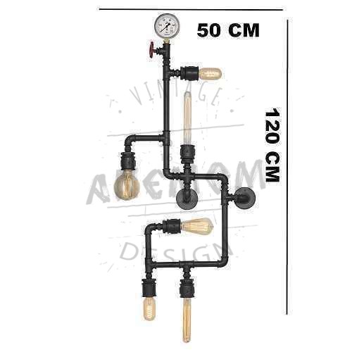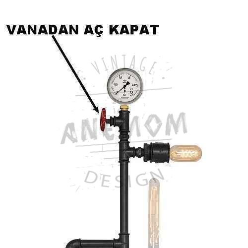 Aplik Retro Gotik Tarz Su Borusu Manometre Açma Kapama Vanalı Siyah Bakır Altın