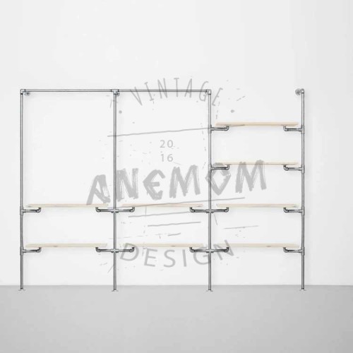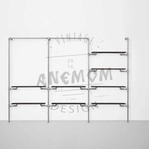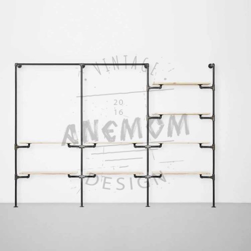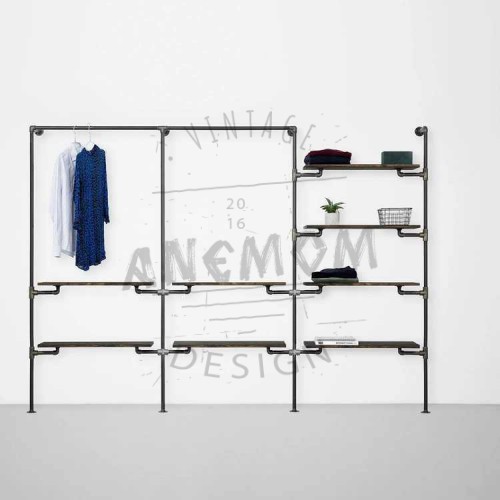 Elbise Askı ve Rafı Butik Mağaza Konfeksiyonlar İçin Sekiz Raflı Gardrop Duvar Tipi Su Borusu Retro Tarz
