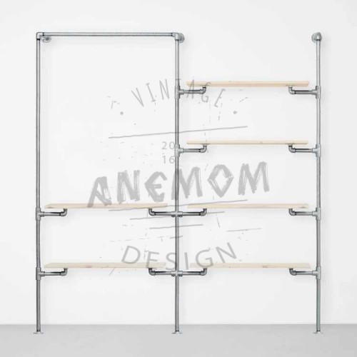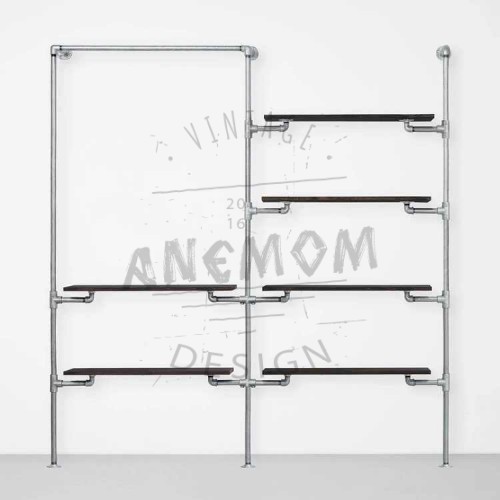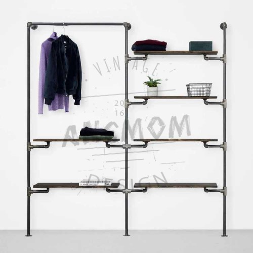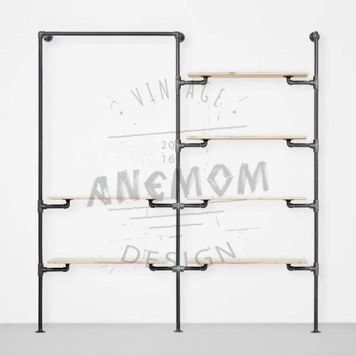 Elbise Askısı Mağaza Butik Konfeksiyon İki Bölümlü Altı Raflı Gardrop Duvar Tipi Su Borusu Retro Tarz